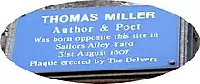 Thomas Miller (31 August 1807 – 24 October 1874) was an English poet and novelist who explored rural subjects. He was one of the most prolific English working-class writers of the 19th century and produced in all over 45 volumes,[1] including some "penny dreadfuls" on urban crime.