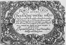 Title page to Vautrollier's first publication in England, A Booke containing divers sortes of hands (1570).