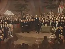 Dudley Observatory Dedication on August 28, 1856, by Tompkins Harrison Matteson. Olcott is seated directly behind (to the left) of Mrs. Dudley