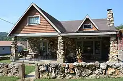The Thomas Walker House is a historic house at 201 North Spring Street in Hardy, Arkansas. Built in 1925, this 1+1⁄2-story stone structure is a particularly fine local example of Craftsman style. It is fashioned out of rough-cut local fieldstone, and has a prominent front porch supported by tapered square columns, and its low-pitch cross gable roof has exposed rafter ends. The interior retains period flooring, woodwork, and hardware. The house was built for Leonard Brophy, who only lived there a few years before selling it to Thomas Walker.[2]