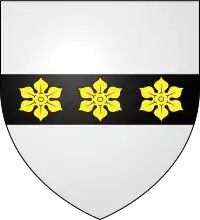 Arms of Thomas de Morham: Argent, on a fess sable, three sextifoils or.