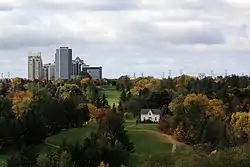 The Thornhill Club (also as Thornhill Golf Club) opened in 1922 and designed by Stanley Thompson is a 18 hole course located on the west side of Yonge Street with Uplands Golf Course located on the northside and Ladies Golf Club of Toronto on the opposite side of Yonge.[14] It hosted the 1945 Canadian Open.