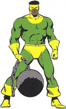Phillip Lamarr Cunningham identifies how black supervillains are often forced to choose between great power and great intellect: "Thunderball, who despite his genius-level intellect relies primarily on his strength, has resorted to utilizing a ball and chain as a weapon, and commits crimes with his band of ruffians, The Wrecking Crew."[2]