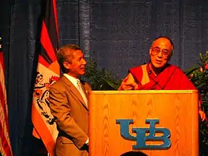Thupten Jinpa Langri (born 1958)[1] is a Tibetan Buddhist scholar, former monk and an academic of religious studies and both Eastern and Western philosophy. He has been the principal English translator to the Dalai Lama since 1985.[1] He has translated and edited more than ten books by the Dalai Lama including The World of Tibetan Buddhism (Wisdom Publications, 1993), A Good Heart: A Buddhist Perspective on the Teachings of Jesus (Wisdom Publications, 1996), and the New York Times bestseller Ethics for the New Millennium (Riverhead, 1999).[2]