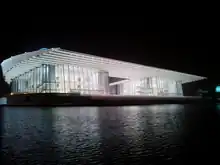 Tianjin Grand Theatre, also known as the Tianjin Cultural Centre Grand Theatre, is located on the east side of the Tianjin Cultural Centre, Hexi District, Tianjin City, People's Republic of China. It is the largest venue in the Tianjin Cultural Centre. Designed by German GMP architectural company, the theatre adopts the style of modernist architecture. The construction of the Tianjin Grand Theatre started in 2009, completed and put into use on April 22, 2012. Its total construction space amounts to 105,000 m2. The theatre can seat 3,600 people, and costs 1.533 billion RMB in total.