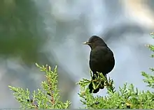 The Tibetan blackbird was originally described as Merula maxima by Henry Seebohm in 1881 on the basis of a specimen collected by Thomas Jerdon in Gulmarg, Kashmir.[3][4] It was subsequently considered a subspecies of the common blackbird by Charles Richmond in 1896,[5] and was moved to Turdus with that species.[6] It was raised to species status again in 2008 on the basis of phylogenetic evidence.[7] The generic name Turdus is from the Latin turdus, meaning thrush, while the specific name maximus is from the Latin maximus, meaning greatest.[8] Tibetan blackbird is the official common name designated by the International Ornithologists' Union.[9] It is also called the Central Asian blackbird.[10]