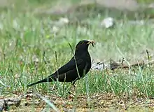 Tibetan blackbird feeding on worms in Hunza, Pakistan