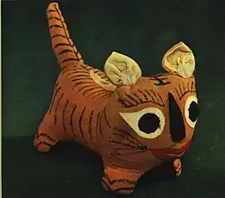 A handmade toy tiger, c.1962. Note the distinct character for "king" () over the forehead.