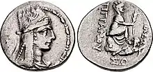 Tigranes the Younger was the son and heir of the Artaxiad king of Armenia, Tigranes the Elder (r. 95–55 BC). His mother was Cleopatra of Pontus, a daughter of Mithridates VI Eupator (r. 120–63 BC), the king of Pontus.[1] In c. 66 BC, Tigranes the Younger fell out with his father and fled to the court of the Parthian monarch Phraates III (r. 69–57 BC). He agreed to help Phraates III take the Armenian throne in return for marrying his daughter.[2] This marriage, which took place in 66/65 BC, gave Phraates III the opportunity to involve himself in the affairs of Armenia, including preventing the Roman commander Pompey from putting Parthian interests in jeopardy.[3] Phraates III, together with Tigranes the Younger, led an expedition into Armenia. Initially successful, their efforts were halted by a long siege at Artaxata, which led Phraates III to put Tigranes the Younger in charge of the expedition, leaving him with some Parthian soldiers.[4] Ultimately, Tigranes the Younger was defeated by his father, however, leading him to join Pompey instead.[5] Tigranes the Elder soon surrendered to Pompey, who chose to allow him to retain his crown.[6] Instead, Tigranes the Younger was made the ruler of Sophene with the assurance that he would ascend to the Armenian throne after his father's death.[7]