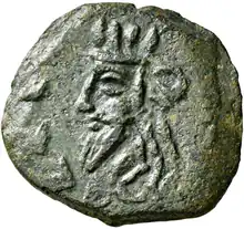 ![]() Obverse of a coin attributed to Tiridates II of Armenia | |