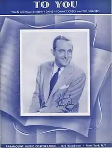 "To You" is a 1939 song composed by Tommy Dorsey with Benny Davis and Ted Shapiro. The song was a top 10 hit on the Billboard charts.