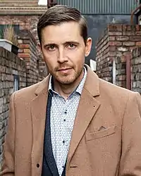 Todd Grimshaw is a fictional character from the British soap opera Coronation Street, formerly played by Bruno Langley from 2001 to 2017, and now played by Gareth Pierce. The character's debut was broadcast on 14 January 2001. He was introduced as part of the Grimshaw family, formed around the established character Eileen Grimshaw (Sue Cleaver). Todd was the programme's first gay character which generated much coverage in the British media. The coming out storyline was credited for helping Coronation Street portray a more accurate depiction of society in the 21st century.[1] The character's storylines have mainly focused on his relationships with Sarah-Louise Platt (Tina O'Brien), Karl Foster (Chris Finch), Marcus Dent (Charlie Condou) and Billy Mayhew (Daniel Brocklebank). Langley decided to leave the show in 2004 but returned for brief appearances in 2007 and 2011. The actor agreed to reprise the role on a permanent basis in 2013. Todd remained a part of the series until Langley's contract was terminated following legal issues in 2017. It was announced in July 2020 that Todd was to return, with the role having been recast to Pierce; Todd returned on 9 October 2020.