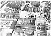 The northern, original part of the square is lined with apartment blocks in red brick. They are from 1921–24 and were designed by Rolf Schroeader with Frederik Wagner as executing architect.