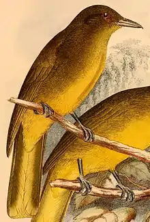 - ↑ Gill, Frank; Donsker, David; Rasmussen, Pamela, eds. (July 2023). "Bulbuls". IOC World Bird List Version 13.2. International Ornithologists' Union. Retrieved 24 July 2023.