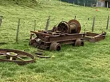 There were several sawmills, milling trees such as rimu.[30] Bauchop's mill burnt down in 1912[31] and narrowly escaped another fire in 1917.[32] There were 3 timber mills in 1921.[33] Some of the sawmills were linked to their bush by tramways, between at least 1902[34] and 1925.[35] One extended 2.5 km (1.6 mi) from the railway station towards Waikawa.[36]