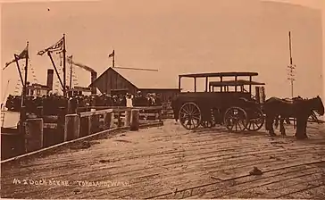 Vacationers from Seattle or Portland would travel by train to South Bend and then catch a ride on Captain A.W. Reed's steamers Reliable (launched in 1902) and Shamrock (added to Reed's fleet in 1906). Disembarking at the Tokeland dock, a horse drawn bus driven by William Kindred would take visitors the rest of the way to the Tokeland Hotel.