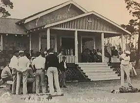 The Tokeland Hotel served as the golf club house for until 1929 when a boarded up pool hall one mile east of the hotel near the old dock was rolled on planks pulled by two teams of horses to the Tokeland Hotel property and became the golf course clubhouse.[9]
