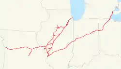 Clover Leaf system as of 1918, including the Chicago and Alton Railroad, controlled until 1921