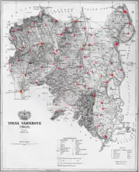 Ethnic map of the county with data of the 1910 census (see the key in the description).