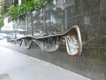 Designed as a purely abstract wall fountain, this sculpture did not symbolize any particular aspect of the P&O Company. Bass's sculpture caused considerable controversy when it was completed in 1963. When the work was unveiled, its indirect resemblance to a Parisian pissoir and its position opposite the French Airline office provoked a witty comment in the sixth edition of OZ magazine (1964) about the city's latest status symbol as a convenience for the people of Sydney and as a welcoming sign to French travellers: "there is a nominal charge, of course, but don't worry, there is no need to pay immediately. Just P. & O." (pee and owe). With it they published a renowned satirical photograph which showed the fountain apparently being used as a urinal, with a caption which read "Pictured is a trio of Sydney natives P. & O.'ing in the Bass urinal".[6][7] For this and other supposed offences the editors of the magazine, Richard Neville, Richard Walsh and Martin Sharp were charged, tried and sentenced to jail with hard labour for "obscenity and encouraging public urination", although the defendants subsequently appealed against the sentences, which were revoked. In the trial Tom Bass appeared in their defence. Although the building is no longer owned by P&O, the work maintains an iconic presence in Sydney. The building was demolished in December 2017 for the construction of the entrance to the Martin Place Sydney Metro station 23 metres below street level, and the wall fountain will be reinstalled into the public space of the replacement building.