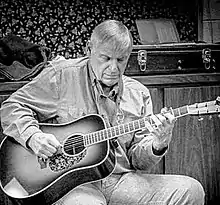 Tom Brosius in later years, playing guitar.