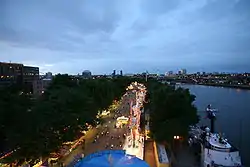 Governor Tom McCall Waterfront Park is a 36.59-acre (148,100 m2) park located in downtown Portland, Oregon, along the Willamette River. After the 1974 removal of Harbor Drive, a major milestone in the freeway removal movement, the park was opened to the public in 1978. The park covers 13 tax lots and is owned by the City of Portland (Portland Parks and Recreation).[1] The park was renamed in 1984 to honor Tom McCall, the Oregon governor who pledged his support for the beautification of the west bank of the Willamette River—harkening back to the City Beautiful plans at the turn of the century which envisioned parks and greenways along the river.[2] The park is bordered by RiverPlace to the south, the Steel Bridge to the north, Naito Parkway to the west, and Willamette River to the east. In October 2012, Waterfront Park was voted one of America's ten greatest public spaces by the American Planning Association.[3]