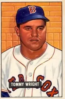 Wright was signed by the Boston Red Sox as an amateur free agent in 1942. After his first professional season, he entered the United States Army Air Forces, where he served in the Pacific Theater of Operations during World War II and missed the 1943–45 seasons.[1] He returned to baseball in 1946, and led the Class C Carolina League in batting average (.380) and hits (an even 200), while making the CL All-Star team. His performance earned him a three-level promotion to the Double-A Southern Association for 1947, where he batted .325 and was also named an All-Star. Then, in 1948, he hit over .300 (at .307) for a third straight season, this time in the Triple-A American Association. On September 15, 1948, he made his Major League debut with the Red Sox—tripling as a pinch hitter in his first big-league at bat.[2] Wright then returned to Triple-A for the entire 1949 campaign. He won the American Association batting championship (hitting .368) and collected 200 hits, second in the league. During the September 1949 pennant race, he made five pinch-hitting appearances for the Red Sox.