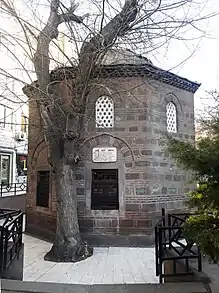 It is in Altındağ secondary municipality of Ankara at 39°56′18″N 32°51′23″E / 39.93833°N 32.85639°E. Its distance to Ulus Square is less than 500 metres (1,600 ft). According to the inscription on the gate, the mausoleum was built in 1577, during the Ottoman Empire period. There is only one coffin in the mausoleum.[1] It is an octagonal building with lead coating roof. The walls are of cut stone. The gate faces east.[2]