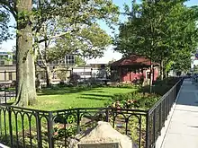 Tompkinsville, located in the Town of Castleton, was the site where early European explorers replenished their fresh water supplies and was known in colonial times as the "Watering Place". It was opposite the Watering Place that the then largest British expeditionary force, with 450 ships and 32,000 soldiers, arrived in Upper New York Bay and landed in advance of the American Revolutionary War.[1] In 1799, the New York state government took 30 acres (12 ha) along the waterfront, upon which it established the New York Marine Hospital (also "The Quarantine"), a contagious disease hospital[2][3] and quarantine station.