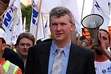 Burke at a 2005 protest against the Howard government's industrial relations policy