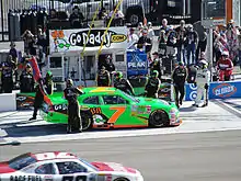 In 2008, he began his crew chief career with Hendrick Motorsports, as Dale Earnhardt Jr. began racing for Rick Hendrick. After a poor showing in the 2009 Coca-Cola 600, some began to talk of Eury's possible firing and that he would be replaced by Ron Malec, who was the car chief for Hendrick teammate Jimmie Johnson's No. 48 car.[1] On May 28, 2009, Hendrick Motorsports announced that Eury Jr. would be demoted to crew chief the team's part-time R&D car, the No. 25, driven by Brad Keselowski, replacing Lance McGrew, who switched jobs with Eury Jr. and became Earnhardt Jr.'s crew chief.[2] In 2010, Eury Jr. became a crew chief for Earnhardt Jr.'s JR Motorsports team in the Nationwide Series, crew chiefing the team's No. 7 car, driven by IndyCar driver Danica Patrick as well as other drivers that year and in 2011. In 2012, Patrick left IndyCar to drive the car full-time with Eury Jr. as her crew chief for most of the season until he was released from the team before the race at Kentucky in September. Eury Jr. was replaced by Ryan Pemberton, who was hired to be the team's new competition director, replacing his father Tony Eury Sr. who was also released from JRM, as well as the interim crew chief for Patrick's No. 7 car.[3] On December 10, 2012, Eury Jr. was hired by Swan Racing (previously Inception Motorsports) as the crew chief for David Stremme's No. 30 car in the Sprint Cup Series, replacing Steven Lane.[4]