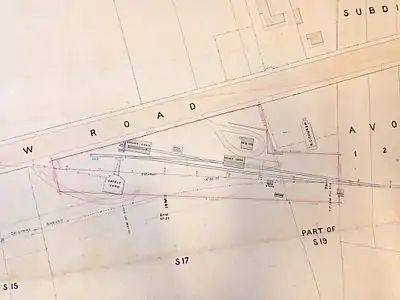 The original railway stopping point on the narrow gauge Clackline–Miling line was where a railway platform is indicated on the north side of the track on the Public Works Department plan for that time.[2][3]