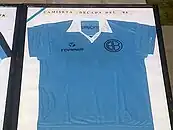 (Left): Belgrano de Córdoba shirts from the 1980s; (right): Racing Club shirt gifted to former Argentine President Néstor Kirchner