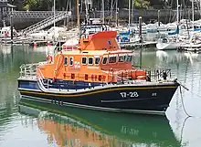 An inshore lifeboat was sent to Torbay for the summer of 1964. It proved a useful addition to the station and so became a permanent feature. Until 1969 the ILB was an inflatable Inshore Rescue Boat (later known as the D-class (EA16)), but after that rigid A Class ILBs were kept moored in the harbour. Since January 1987 a modern D Class has been Torbay's ILB. A portable building was provided as a temporary boathouse for the ILB but in 1990 work was undertaken on the boathouse to house the ILB and improve the crew facilities.[4] Further improvements were made in 2007 and at the same time a new pontoon was provided for the all-weather lifeboat.[5]
