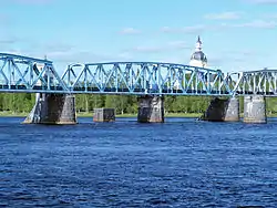 The Torne River Railway Bridge is a dual gauge railway bridge between Haparanda, Sweden and Tornio, Finland; the bridge can be used by the 1524mm gauge trains of Finland, as well the 1435mm gauge trains used in Sweden.[1] A temporary ice river track was built over the Torne River in 1917.[2]