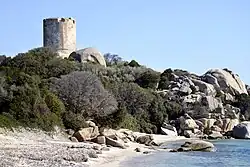The Tower of Caldarellu or the Tower of Figari (Corsican: Torra di Caldarellu) is a Genoese tower located in the commune of Pianottoli-Caldarello (Corse-du-Sud) on the southwest coast of the Corsica. The tower sits at an elevation of 16 metres (52 ft) on the north shore of the Baie de Figari.
