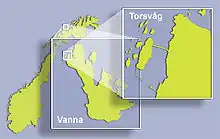 The village of Torsvåg includes a village area on the island of Vannøya and also an area on the islet of Kåja, located just offshore. There is a causeway connecting the two places which forms a nice harbor surrounded by the fishing village. The breakwaters at the entrance to the harbor form a snug port at the threshold of the big seas. The Vanna fish processing plant, «Torsvågbruket», is located on Kåja island and Torsvåg Lighthouse is on the highest point of the island. Today, Torsvåg only has between 10 and 20 inhabitants, but earlier in its history this fishing village often had hundreds of residents.[2]