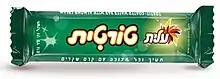 Tortit (Hebrew: טורטית) is a popular[1] Israeli chocolate bar produced by the Elite Confectionery Company in the confectionery division located in Nazareth Illit, Israel. The snack is made of a wafer coated with chocolate and contains rum-like almond cream. The bar is sold in a 40 gram green package. The snack is kosher and parve[2] (made on a dairy production line that has been prepared for parve). Its popularity in Israel is explained by the fact that, being parve, it can also be eaten as a dessert after a meat meal, and since it has no milk or eggs it is vegan.[3] Tortit bears similarity in taste and packing to the Polish Grześki.[3]
