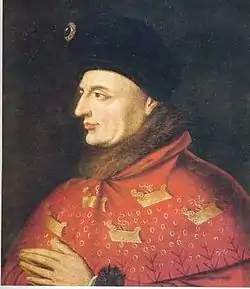 In 1369, the hôtel passed to Philip the Bold, the Duke of Burgundy, by his marriage to Marguerite, the Countess of Flanders and of Artois. The records of the concierge of the house show that between July 1371, and Easter 1375, he carried out important construction works, including the building of a tower.[5] After Philip's death in 1404, it became the property of Jean de Bourgogne, better known as Jean sans Peur, or John the Fearless.[2][3]