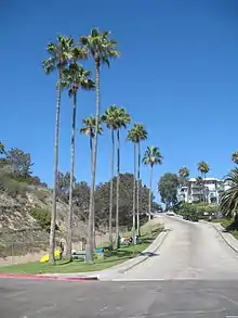 Tourmaline Surfing Park is less than 1000 feet west of the point where Tourmaline Street crosses La Jolla Boulevard. Reaching the park involves a steep, palm-lined descent through Tourmaline Canyon to a fairly large parking lot, which is slightly elevated but situated right beside the beach. There are showers and restrooms, as well as railings and places to sit.[1]