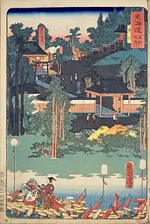 Toyokawa Inari, from the ukiyo-e series Tōkaidō meisho fūkei (東海道名所風) by Toyohara Kunichika (1863)