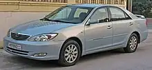 The Toyota Camry (XV30) is a mid-size car produced by Toyota from June 2001 to January 2006. The XV30 series represented the fifth generation of the Toyota Camry in all markets outside Japan, which followed a different generational lineage. The XV30 range is split into different model codes indicative of the engine. Four-cylinder models utilize the ACV30 (front-wheel drive) and ACV35 (all-wheel drive) codes, with MCV30 (3.0-liter) and MCV31 (3.3-liter) designating the six-cylinder versions.