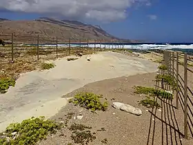 The Trachilos footprints are possibly tetrapod footprints which show hominin-like characteristics from the late Miocene on the western Crete, close to the village of Trachilos, west of Kissamos, in the Chania Prefecture.[1] Researchers describe the tracks as representing at least one apparent bipedal[1] hominin or an unknown primate. The stratum in which the footprints were found was dated to about 5.7 million years ago, which predates the previously earliest discovered hominin footprints by about two million years. Later studies show that the footprints might be more than 6 million years old.[2] The researchers of the tracks suggest that it may imply the possibility of hominin evolution outside of Africa, contrary to the current theory.[1]