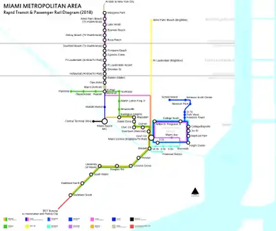 A transit map is a topological map in the form of a schematic diagram used to illustrate the routes and stations within a public transport system—whether this be bus, tram, rapid transit, commuter rail or ferry routes. The main components are color-coded lines to indicate each route or service, with named icons to indicate stations or stops.