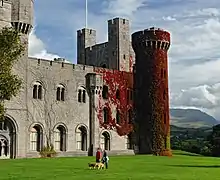 In 1973, Sybil Cholmondeley restored the outside flights of step, which had been demolished by the 3rd earl, as a memorial to her late husband, with a Latin inscription[lower-alpha 1] by John Sparrow.[51] Their son has a large collection of model soldiers, a collection, begun in 1928, that has come to number 20,000. Display cases include representations of the Prussian Gardes du Corps on parade; the Battle of Waterloo, where wool from Scotch sheep imitates the smoke of cannon fire; a skirmish in the Franco-Prussian War; and the Battle of Culloden.[52]