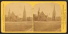 Prior to 1862, the Methodist Episcopal congregation had occupied the Hedding Church on Pelham Street in Boston for some 20 years.[3] The congregation's new church building, located at 740 Tremont Street, "is a large, Gothic, natural-quarry stone building, with two spires, respectively 150 feet and 100 feet high."[1]