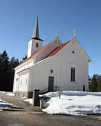 Treungen Church (Norwegian: Treungen kyrkje) is a parish church of the Church of Norway in Nissedal Municipality in Vestfold og Telemark county, Norway. It is located in the village of Treungen. It is one of the churches for the Nissedal parish which is part of the Øvre Telemark prosti (deanery) in the Diocese of Agder og Telemark. The white, wooden church was built in a long church design in 1863 using plans drawn up by the architect Peter Høier Holtermann. The church seats about 250 people.[1][2][3]