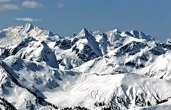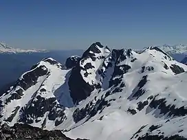 Tricouni Peak is a mountain located south of Cypress Peak on the Squamish-Cheakamus divide within the Pacific Ranges of the Coast Mountains in southwestern British Columbia, Canada. It was named in 1931 by Tom Fyles et al., the first ascent party. According to Tom Fyles himself,[3] "Tricouni Mountain was the name suggested for the peak, as from a distance it had the appearance of three cones". A misinterpreted "resemblance to a 3-pointed tricouni boot nail" was mentioned only much later, and not by Fyles. The name "Tricouni Peak" was adopted on 22 June 1967.[4]