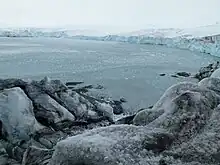 The entrance of Valchev Cove from Perunika Glacier with Trifonova Point on the left and Emona Anchorage in the background