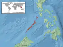 Found in the Philippines on the islands on Palawan and Balabac. The type locality given is "Iwahig, Palawn" (Palawan Island, Philippines).[2]